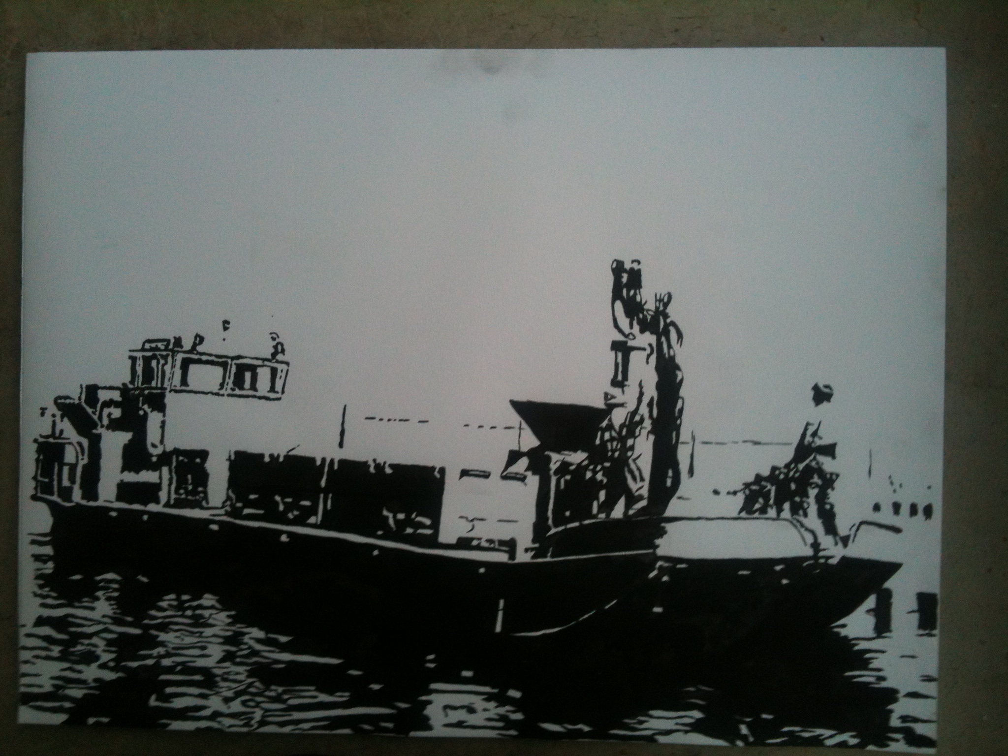 Marins pêcheur en activité Encre de chine Paysages Coup de coeur de l'artiste Ce tableau fait à l'encre de chine représente des marins pêcheur en pleine activité. Cette scène de vie a été peinte aprés l'avoir vécue sur l'île d'Oléron